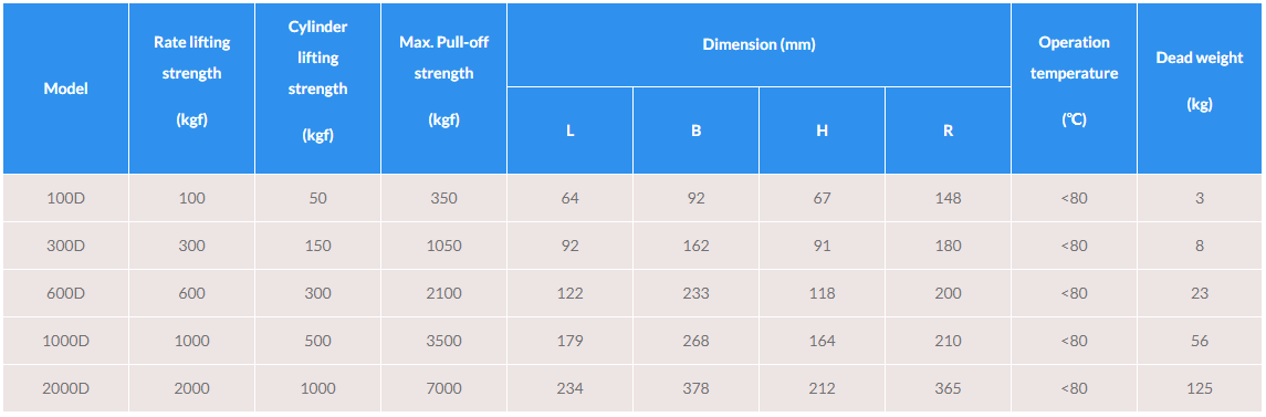 電磁升降機(jī)存在功耗大、發(fā)熱嚴(yán)重、磁滯現(xiàn)象、體積大、維護(hù)困難等問(wèn)題。而永磁升降機(jī)結(jié)構(gòu)緊湊,操作難度低,無(wú)功耗。永磁吊具的起重能力還取決于負(fù)載的材料、厚度、表面質(zhì)量。